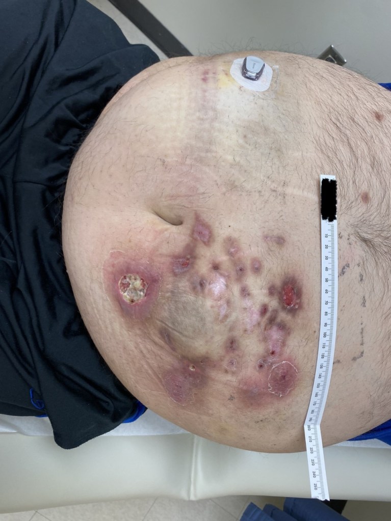 Cutaneous NTM infection Posted bynathanielwarnerOctober 7, 2022January 23, 2024Posted inIntegumentary, Physical ExamTags:Mycobacterium Haemophilium, NTM, Skin Chronically progressive cutaneous NTM infection due to Mycobacterium haemophilum in a patient with a kidney transplant. Initially thought to be Pyoderma gangrenosum. Acute DacrocystitisPyogenic Flexor TenosynovitisUlceroglandular TularemiaCutaneous Disseminated Fusarium Skin LesionsCutaneous NTM infection Share this: Click to share on X (Opens in new window) X Click to share on Facebook (Opens in new window) Facebook Like Loading... Published by nathanielwarner General & transplant infectious diseases physician passionate about bedside clinical skills. View more posts